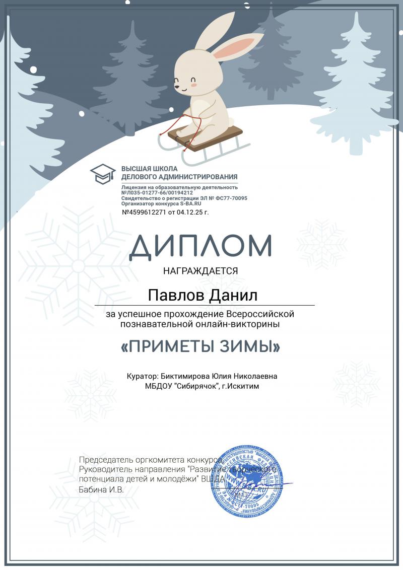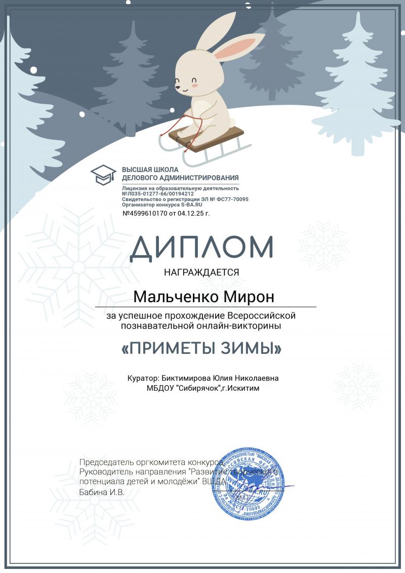 Диплом 3 степени